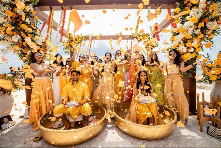 Vibrant décor and joyful rituals in harmonized natural spaces.